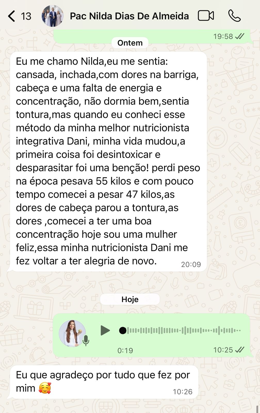 Ao optar por uma consulta comigo, você estará abrindo as portas para uma transformação positiva em sua vida. Sou uma nutricionista funcional apaixonada por ajudar as pessoas a atingirem seu potencial máximo de saúde e bem-estar.